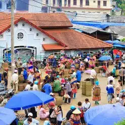 Arrivée de bon matin à la gare de Lao Cai. Vous prenez le petit-déjeuner dans un restaurant local, puis découverte d’un marché hebdomadaire dans la région de Bac Ha. S’il n’y a pas de marché le jour de votre arrivée à Bac Ha, vous ferez cette visite le lendemain matin. Dans ces marchés les habitants des villages de la région viennent vendre et/ou acheter des produits divers: fruits, légumes, alcool, bétails, vêtements… Le marché est aussi l’endroit où les gens se racontent les potins, où les célibataires jouent au jeu de la séduction, où l’on vient seulement pour se balader… Pour l’événement, les minorités (Hmong, Dao, Tay…) s’habillent en leurs plus beaux costumes traditionnels. Vous profitez de l’animation et de la couleur du marché local, puis vous vous installez à votre hôtel à Bac Ha. L’après-midi est consacrée à une randonnée facile à travers les villages de minorités Pu Lao, Nung et Tay. Vous marchez au milieu des montagnes karstiques avec de belles vues sur les rizières en terrasses.