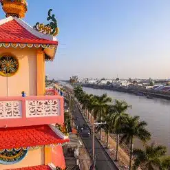 Visite le marché flottant de Cai Rang. Continuation vers Long Xuyen. Balade en vélo sur l’île du tigre pour découvrir le quotidien de ses habitants, paysans ou artisans aux origines khmères, qui y vivent dans des maisons sur pilotis. Nuit a Hoa Binh Hotel.